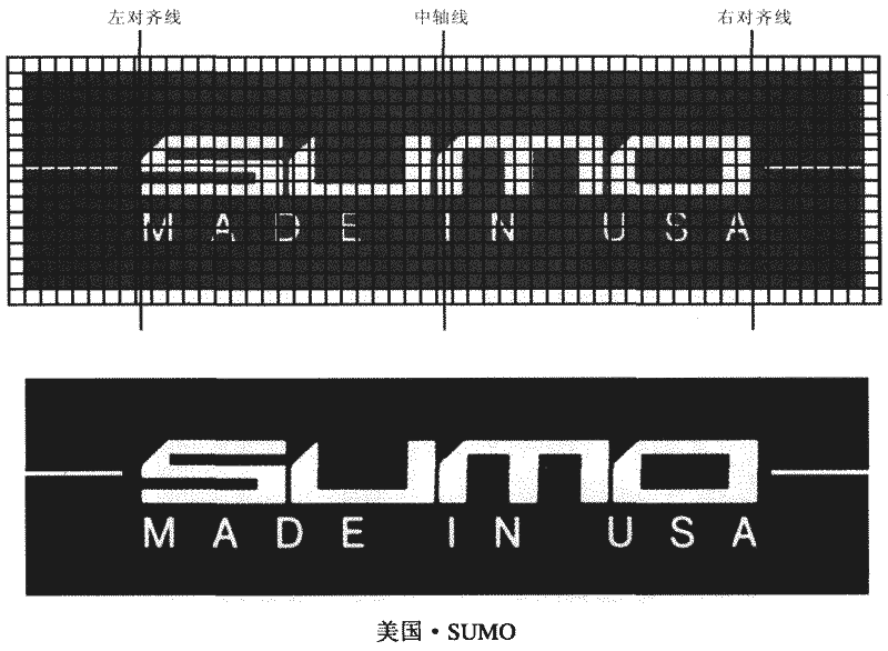 2.構成形式:“標志”與“文字”用水平直線式左右分離排列;兩形象的上下邊(點)控制在上下水平線上,也就是用了“上下軸線對齊”方式。